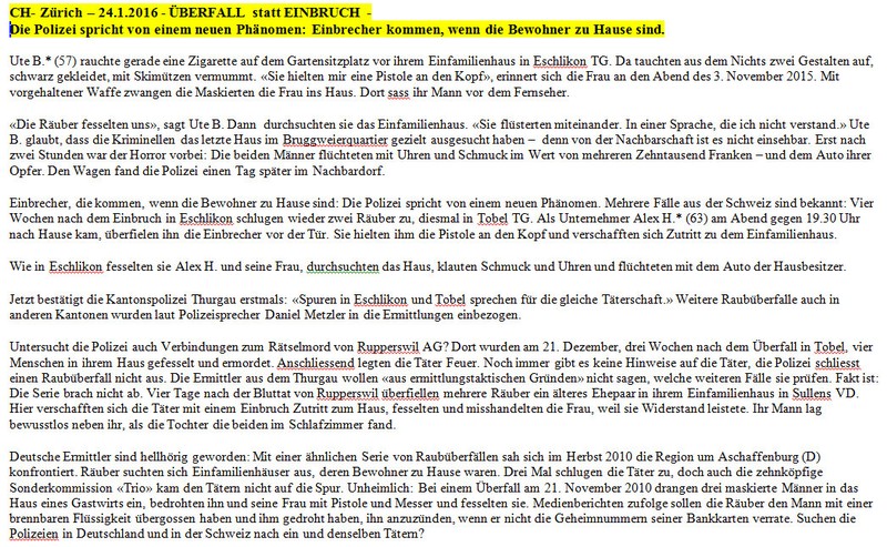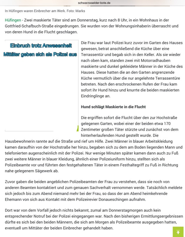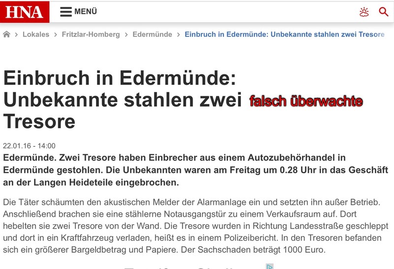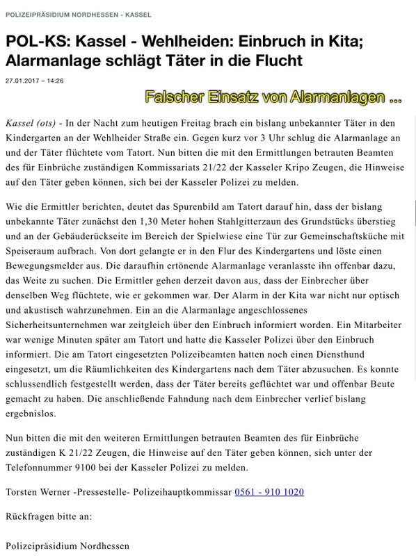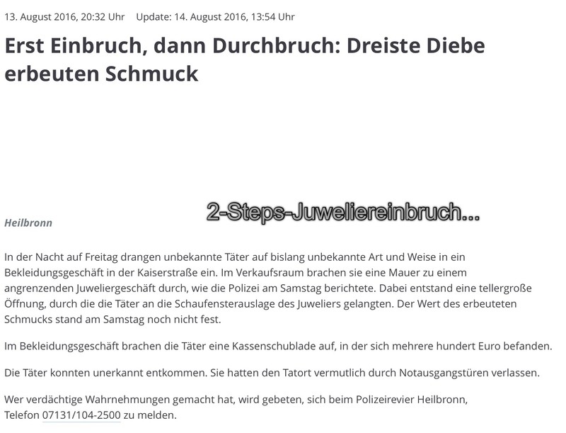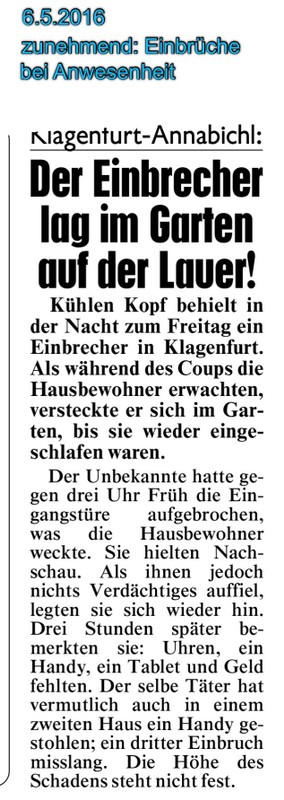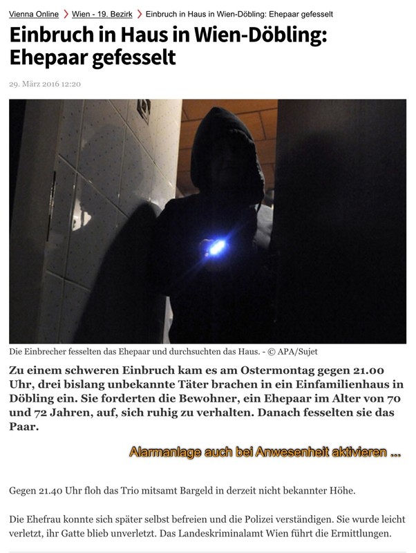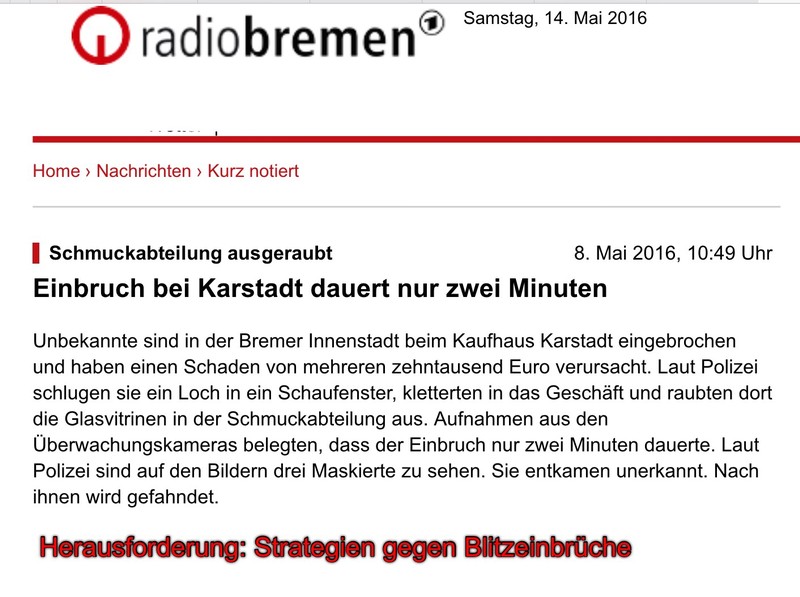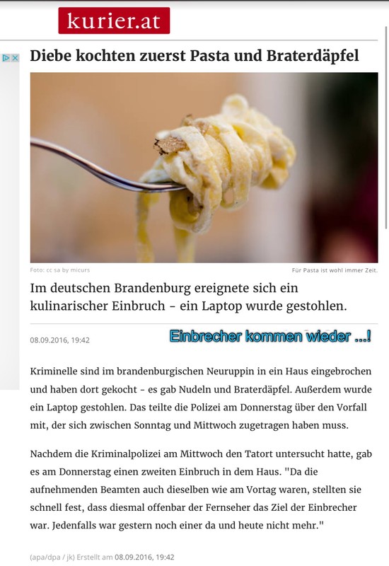 Aus bestimmten Sonderfällen, wie Einbruch trotz Anwesenheit, sind allmählich Standardfälle geworden und werden dort berichtet