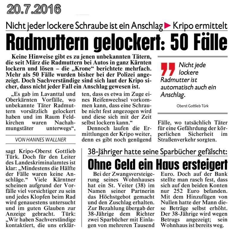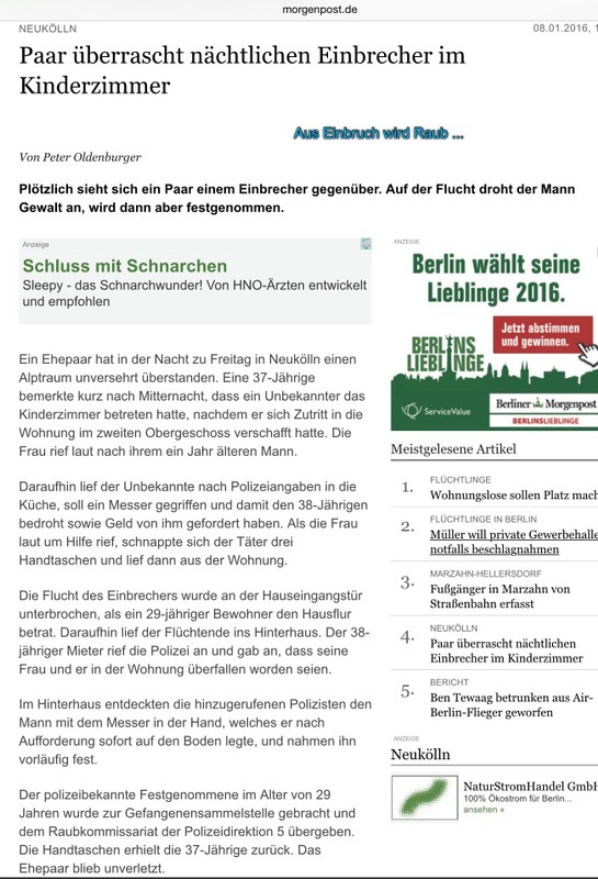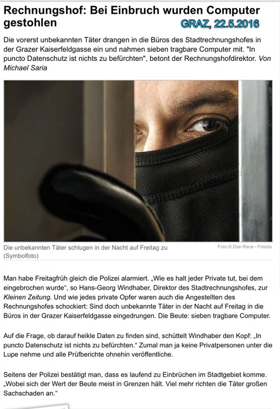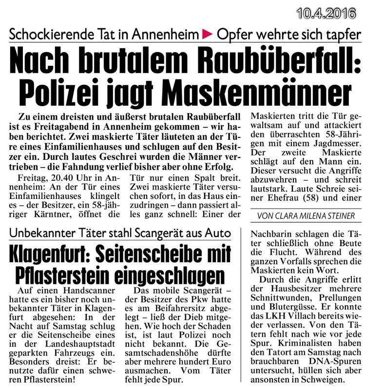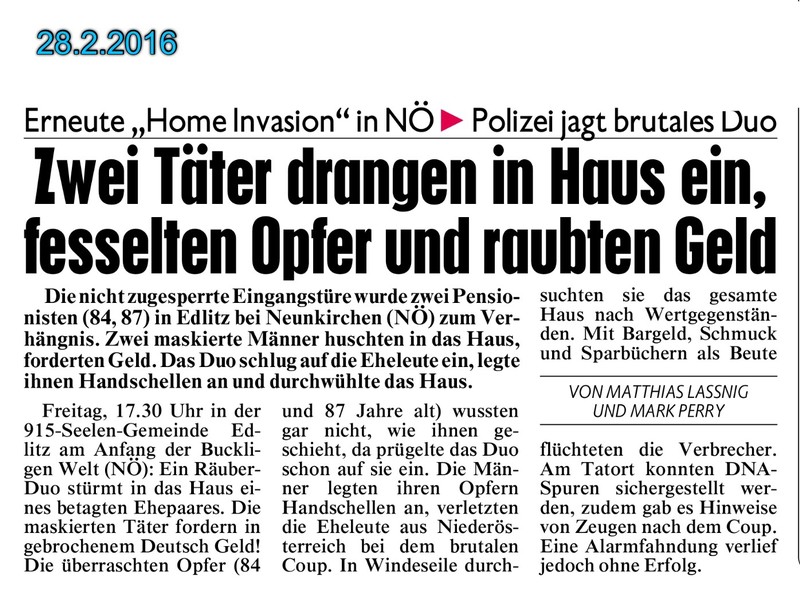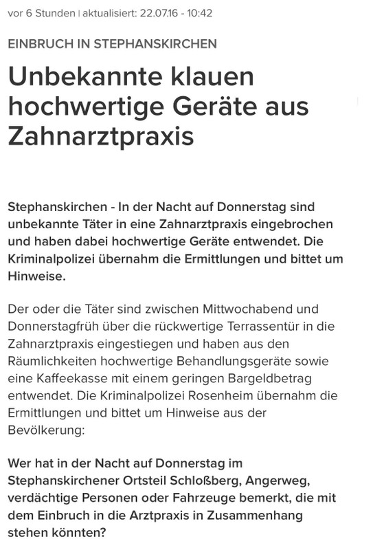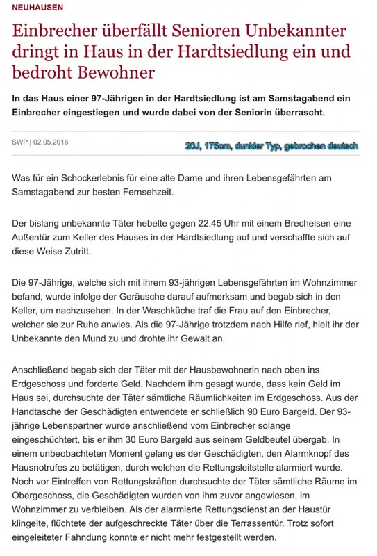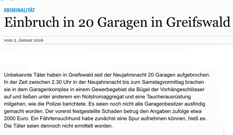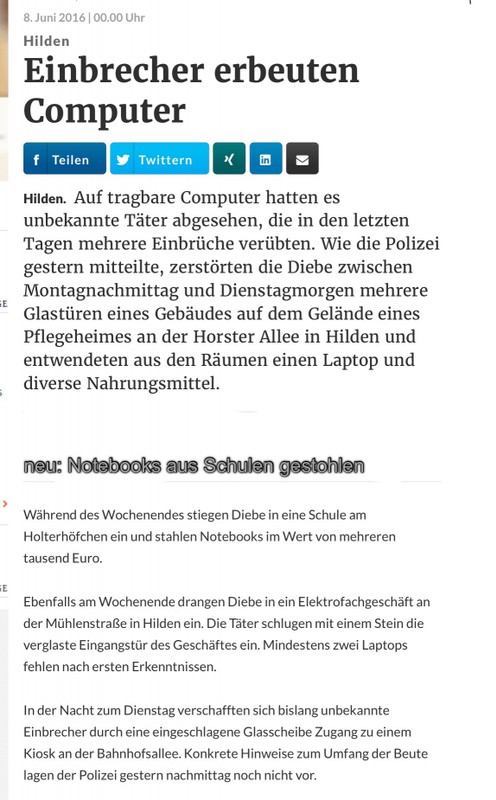 Aus bestimmten Sonderfällen, wie Einbruch trotz Anwesenheit, sind allmählich Standardfälle geworden und werden dort berichtet